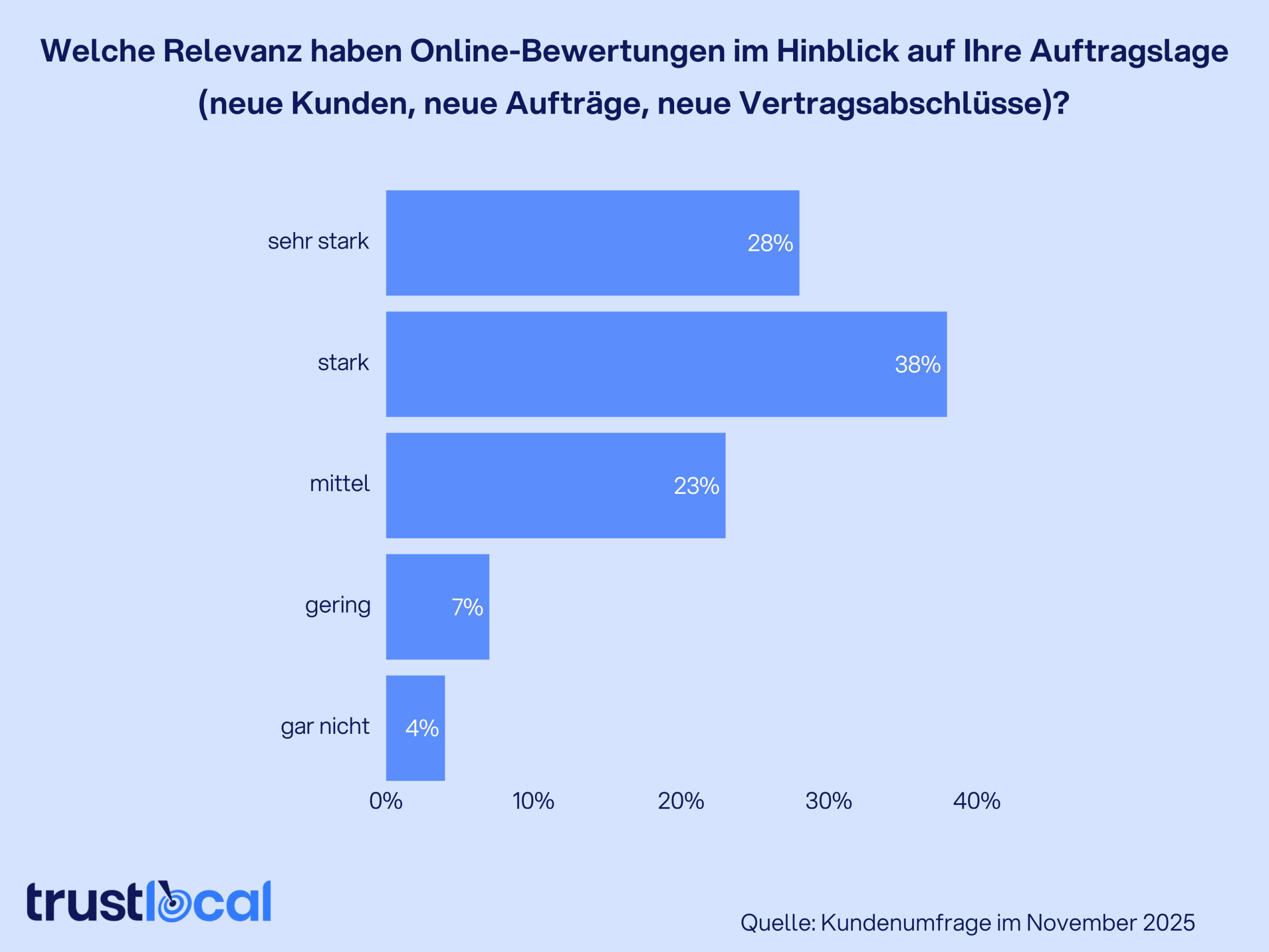 Bildunterschrift: Relevanz von Online-Bewertungen für Auftragslage – Umfrage von Trustlocal