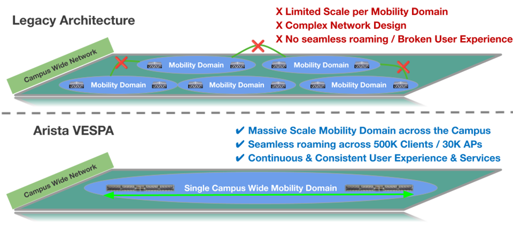 Bildunterschrift: Arista VESPA im Vergleich zu einer veralteten Architektur