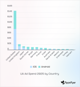 - Trotz geringerer Installs stiegen die gesamten Conversions leicht um 0,3 Prozent, getragen von einer stärkeren iOS-Performance.