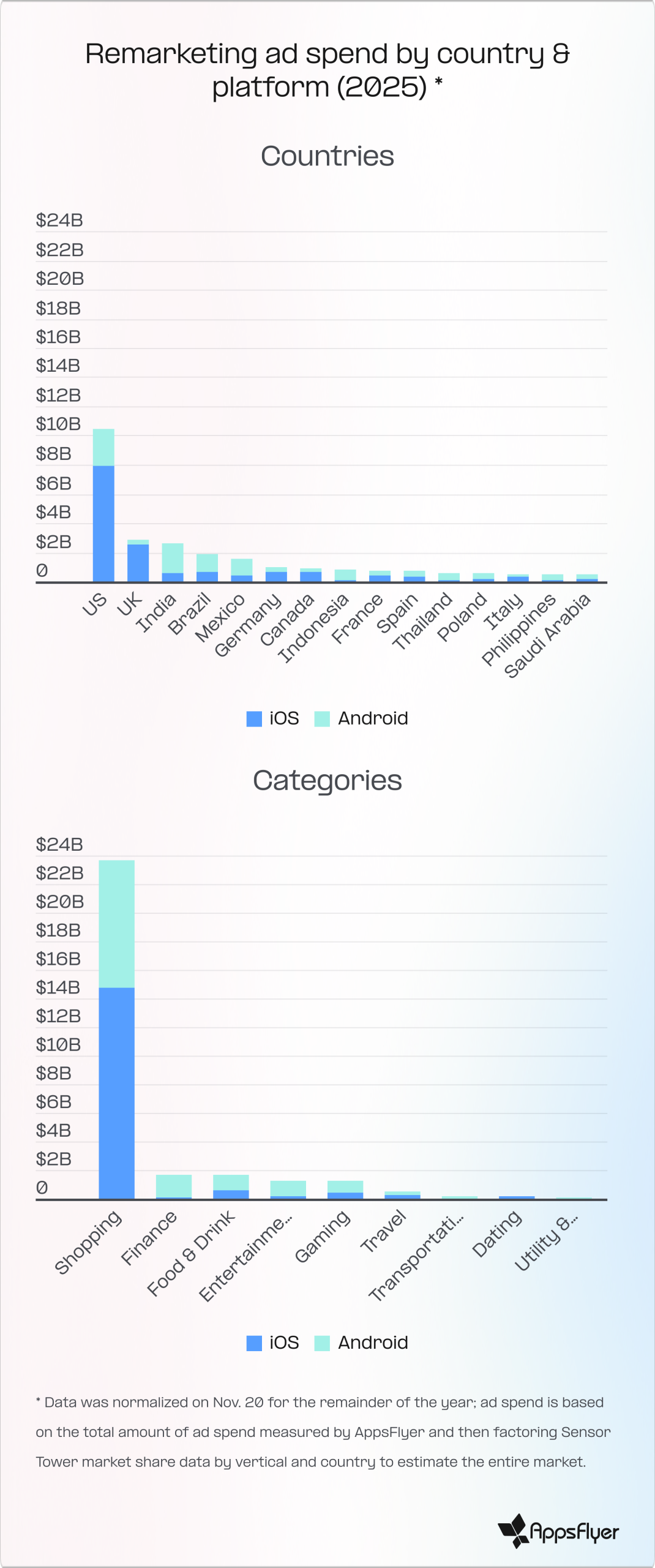Bildunterschrift: Remarketing-Werbeausgaben nach Land und Plattform (2025)