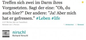 Ich bin ja kein Fan von Fäkalhumor, aber der ist wirklich gut…flach, aber gut :-)